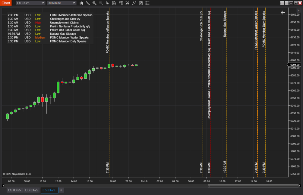 A clean, high-customizable News Overlay indicator for NinjaTrader 8. Stay informed about the day's economic events right on your chart. All news is courtesy of ForexFactory. All future updates are included.